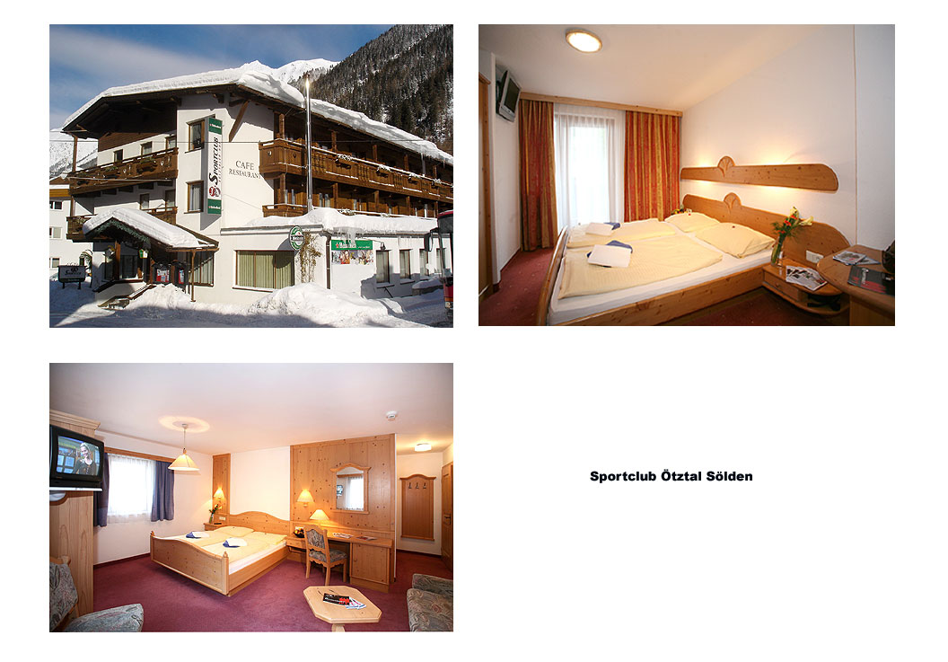 Sportclub Oetztal - SöldenOberhalb von Sölden-Längenfeld in Gries liegt unser Sportclub auf ca. 1600 m auf einem sonnigen Hochplateau. Die urigen Speisesäle und das Bar-Stübli sind holzvertäfelt und sorgen für eine landestypische Atmosphäre. Der Sportclub bietet großzügige, freundlich eingerichtete Doppel-, Drei- und Vierbettzimmer im Tiroler Stil, alle mit Du/WC, neuen Federkernmatratzen, Fön, TV, Safe, größtenteils mit W-Lan und Balkon. Sportclub Ötztal-Sölden: Zimmer Beide Speisesääle, die Bar, der Rezeptionsbereich sowie die öffentlichen Toiletten wurden zum letzten Winter renoviert. Der großzügige Buffetbereich und die aufwendig renovierte Küche entsprechen den aktuellsten Hygienevorschriften. Außerdem wurden alle Zimmer mit hochwertigen Matratzen ausgestattet und ein Großteil aller Zimmer mit neuem Teppichboden verlegt. • Einzelzimmer mit Du/WC (Zustellbett möglich) • Einzelzimmer (2 Zimmer teilen sich ein Bad, Zustellbett möglich) • Doppelzimmer mit Du/WC, tlw. Balkon • Doppelzimmer (2 Zimmer teilen sich ein Bad), tlw. Balkon • kl. Zimmer mit Du/WC, 1 Doppel- oder 2 Einzelbetten, tlw. Ausblick auf Hauswand • Doppelzimmer mit Du/WC, Balkon (1 Zustellbett möglich) • gr. Doppelzimmer mit Du/WC, Balkon (1-2 Zustellbetten möglich) • 3-Bettzimmer mit Du/WC, tlw. Balkon (Doppelbett und Einzelbett) • 4-Bettzimmer mit Du/WC, Balkon (Doppelbett und Etagenbett) Im Haus stehen euch Ski- und Schuhkeller, Rezeption, Bar, Kicker und Dart zur Verfügung. Die großzügige Saunalandschaft mit Ruheraum und Blick auf die umliegende Bergwelt lädt nach einem langen Skitag zum Relaxen ein. Der Wellnessbereich ist täglich geöffnet außer Samstag.Sportclub Ötztal-Sölden: Saunalandschaft In unserem Sportclub sind Haustiere auf Anfrage erlaubt (10 € pro Tag ohne Futter, ggf. Sonderreinigung gegen Aufpreis, vor Ort zu zahlen). Der Sportclub Ötztal-Sölden bietet aufgrund seiner Lage - etwas abseits, so dass wir keinen stören - eine phantastische Vorraussetzung für einen gelungenen Urlaub mit viel Spaß und Party. Die Anbindung an die Partyhochburg Sölden und das Skigebiet wird durch den Skishuttle gewährleistet. Nach den Erfahrungen der ersten Winter haben wir uns nochmal mit den Partnern beraten und nach Lösungen für einen reibungslosen und schnellen Transfer gesucht. Der Skibus wird ab sofort kostenfrei sein und euch täglich dreimal vormittags vom Sportclub direkt zur Giggijochbahn bringen und am Nachmittag dreimal direkt zurück. Ohne Umstieg oder Wartezeiten! Verpflegung